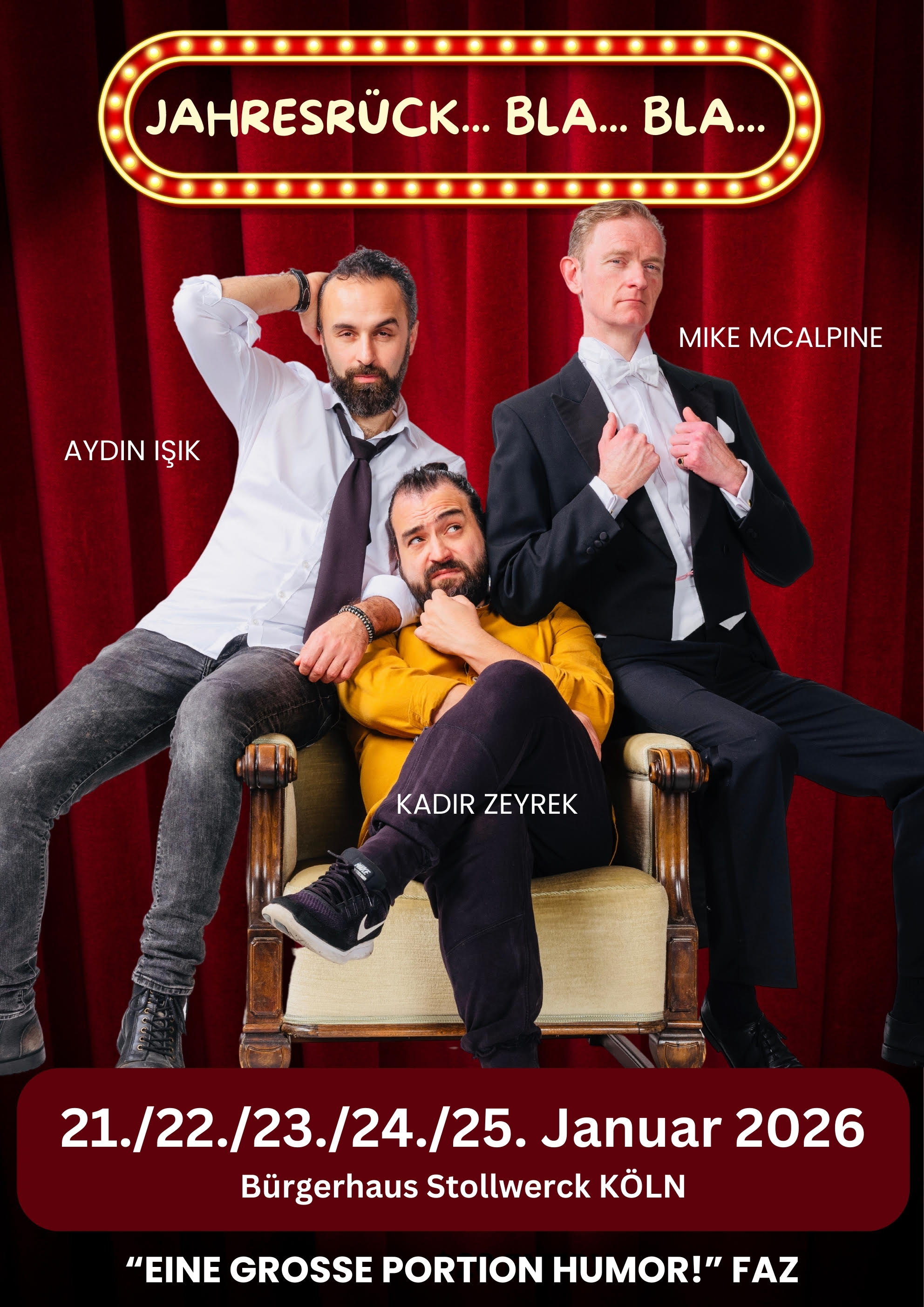 die Sprechstundenhilfe. Und darum gilt ab jetzt für alle Generationen: Runter von der Couch und ab ins Kabarett! Termine dafür sind auch viel einfacher zu bekommen als beim Augenarzt. |